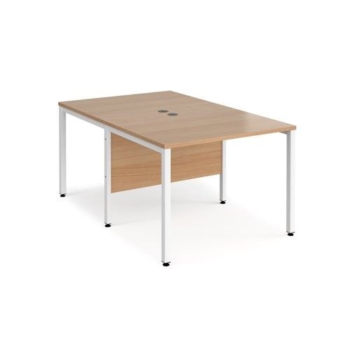 Maestro 25 back to back straight desks 1000mm x 1600mm - white bench leg frame, beech top