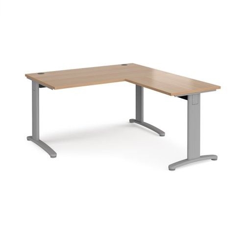 TR10 desk 1400mm x 800mm with 800mm return desk - silver frame, beech top